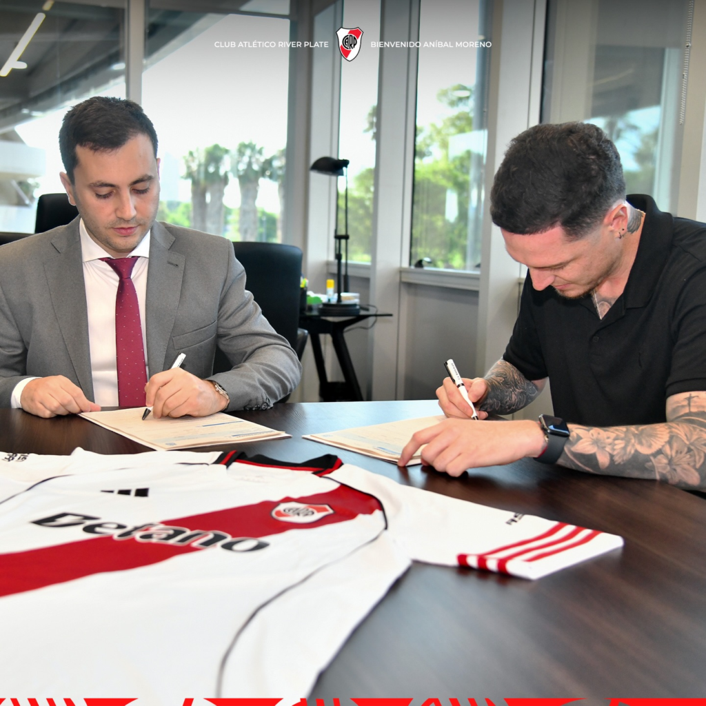 El gran bombazo del mercado de pases ya está listo. Tras unos días de vacaciones en su Catamarca natal, en los que disputó un amistoso solidario, Aníbal Moreno llegó el sábado a última hora a Buenos Aires y este domingo quedó confirmado como el refuerzo estelar de Riverse hizo la revisión médica y, unas horas después, firmó el contrato que lo unirá al club por los próximos cuatro años. Marcelo Gallardo festeja: este lunes ya lo tendrá entrenándose en el Camp, en el tercer día de la pretemporada.