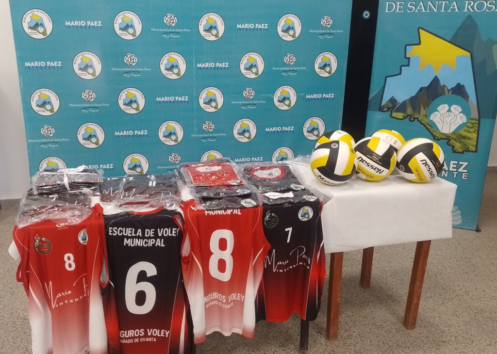El intendente Mario Páez, junto al director de Deportes Ramiro Díaz, realizaron la entrega de camisetas y pelotas a la escuela de vóley “Los Kanguros”, en un encuentro del que también participó el instructor Ezequiel Quiroga.
