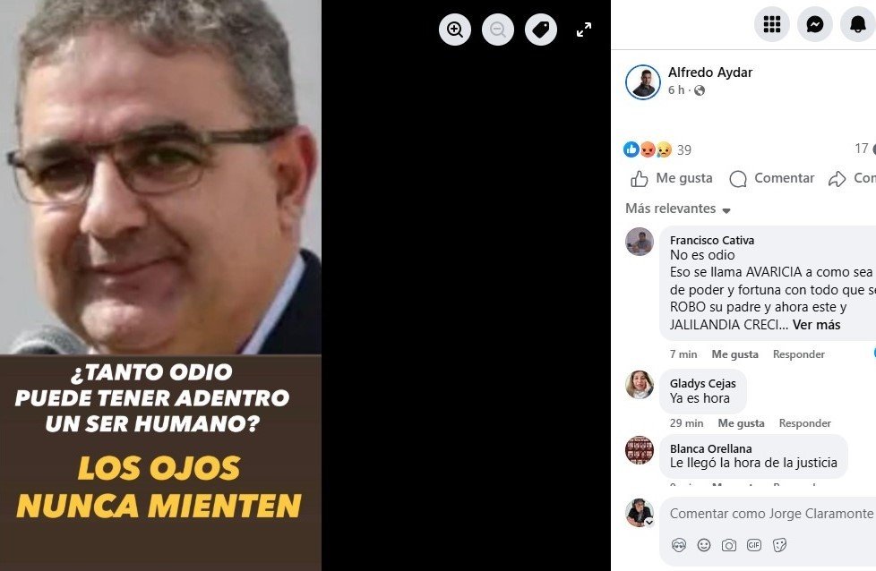 Ante las acusaciones del exintendente santarroseño contra el gobernador Raúl Jalil, la senadora Lucía Corpacci y otros integrantes del Gobierno de Catamarca por el crimen del ministro Juan Carlos Rojas, el letrado de la provincia de Tucumán atacó al primer mandatario catamarqueño, publicando: “¿Tanto odio puede tener adentro un ser humano? Los ojos no mienten”.