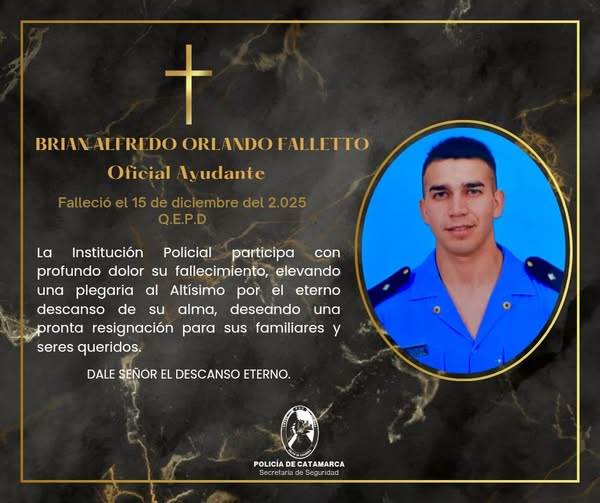 Profunda consternación causó en la Policía de la Provincia la inesperada muerte del Oficial Ayudante, Brian Alfredo Orlando Falletto, en un fatídico choque en La Paz.