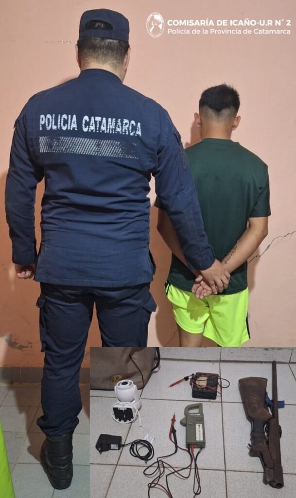 A raíz de una denuncia penal en la que resultó damnificada una persona del sexo masculino, a las 11:45 de la mañana de hoy, personal de la Seccional de Icaño materializó una medida Judicial en el barrio Villa Vieja, de esa localidad del Dpto. La Paz, donde recuperó una (01) cámara Smart con su respectivo cargador, una (01) pinza amperométrica, un (01) multímetro analógico y un (01) bolso térmico que quedaron en calidad de secuestro, al igual que una (01) escopeta calibre 28.