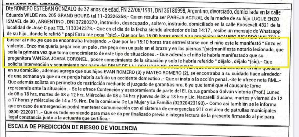 “El 27 de febrero, la madre hizo una denuncia en el Servicio Local de Malvinas Argentinas y, con la intervención de la psicóloga María Eugenia Midolo y la trabajadora social Sofía Leone, ignoraron todas las denuncias previas y el acuerdo homologado, y se los llevó con ella, como si nada”, indican.