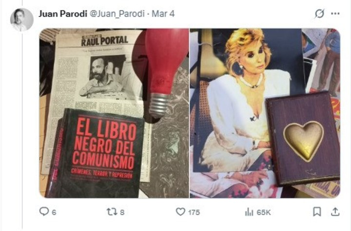 Entre las cosas de Portal se vieron libros sobre animales, recortes de diarios y revistas con reportajes suyos, varias cosas del programa El Portal de las Mascotas y hasta un póster de Mirtha Legrand, además de un fajo de billetes de 100 pesos con su cara.