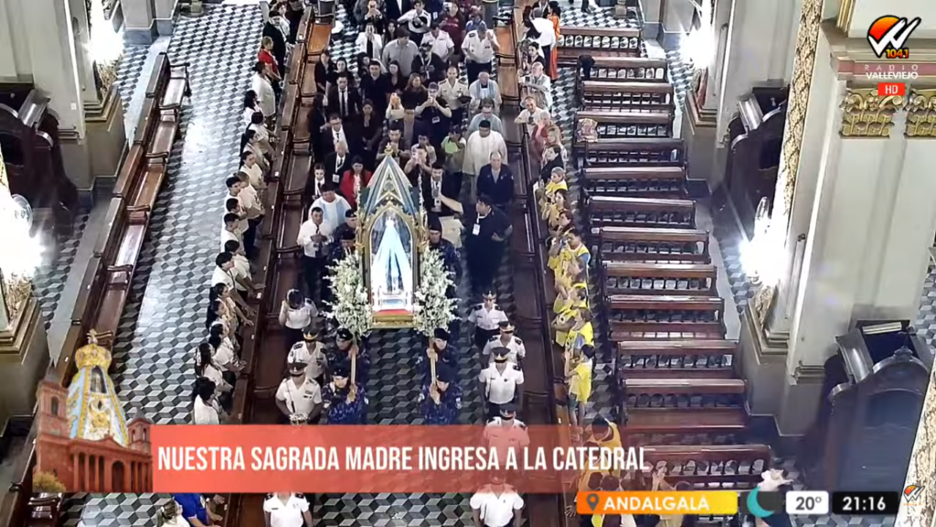 Exactamente a las 21,13 horas, monseñor Luis Urbanc dio por culminada la procesión correspondiente a este año 2025, en medio de una multitud emocionada que acompañó el ingreso de la Virgen del Valle a la Catedral Basílica, con los clásicos pañuelos blancos al aire, saludándola.