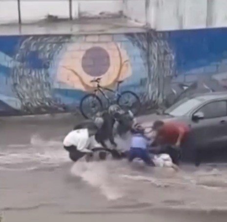 Momentos de zozobra se vivieron este mediodía cuando una joven motociclista fue arrastrada por el agua que corría en la avenida Güemes por la fuerte tormenta desatada en el Valle Central.